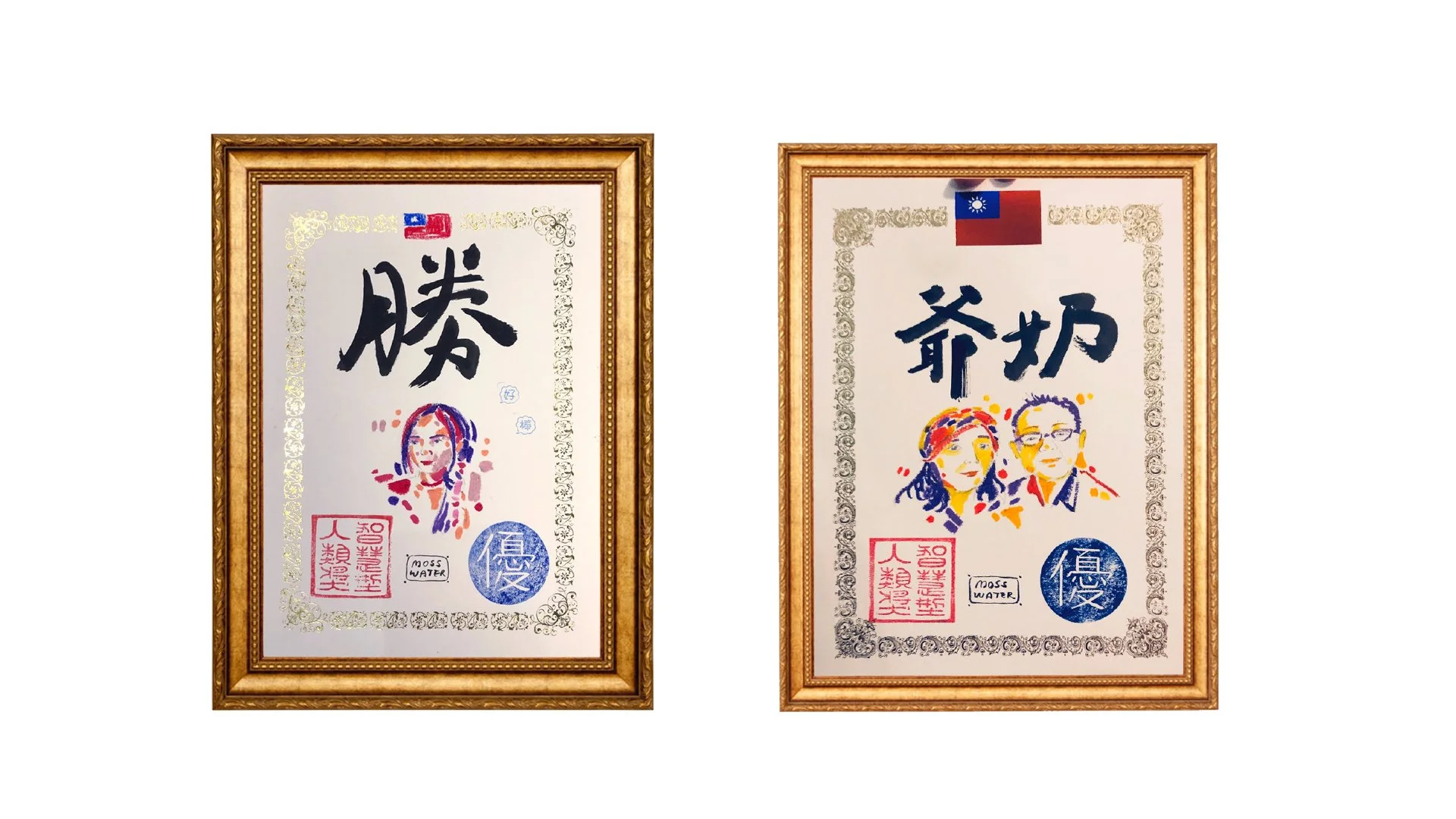 One calligraphy word, with your portrait or anyone you wish to honor the award.