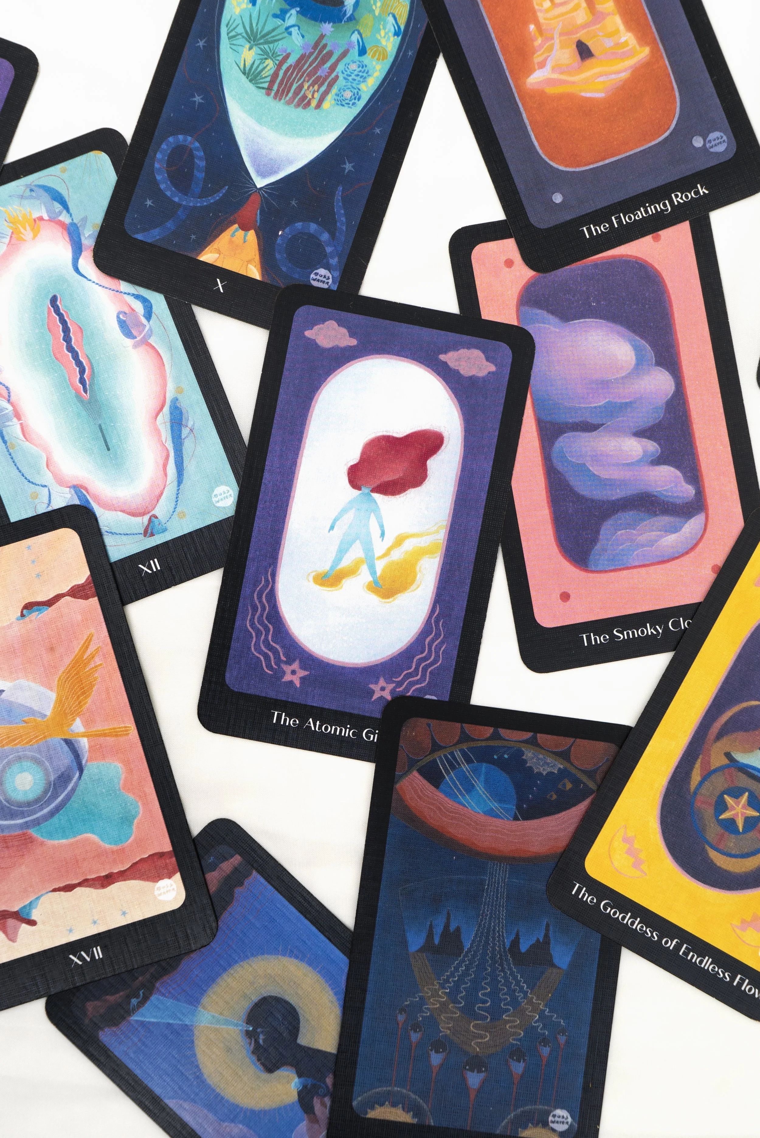 This series started as paintings and then transformed into lightbox installations for its first showcase in Taipei in 2021. Later, mosswater expanded the series into a deck of oracle cards. Tarot cards were a major source of inspiration for this body of work, thus this pivot felt natural. It seems the paintings were always meant to be shuffled by hands.