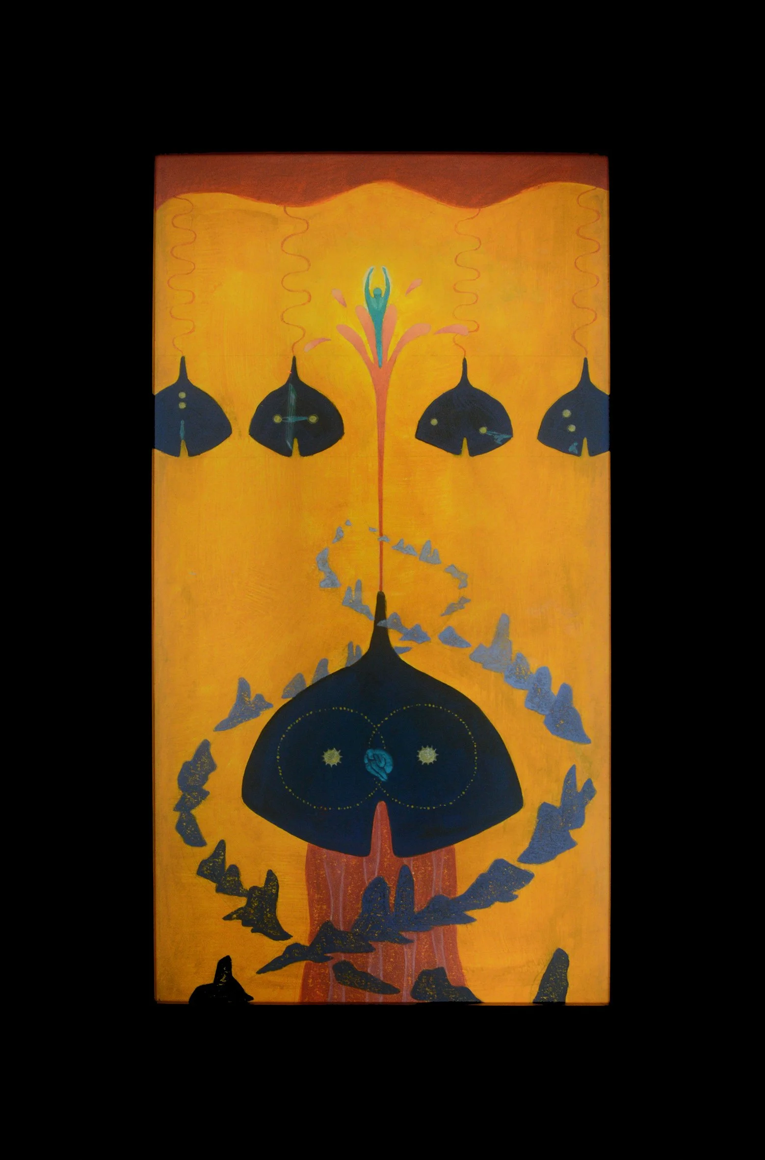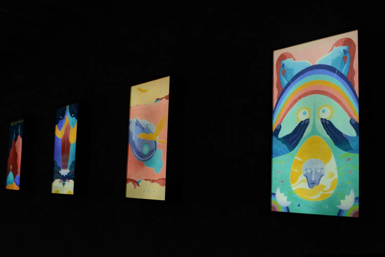 In response to the impact of the pandemic, Xin Taitong Paradise centers its theme on Faith, highlighting Animism and life philosophy. In resonance with this, Black Spring paintings transform into lightboxes—illuminating life’s questions and inviting deeper exploration.